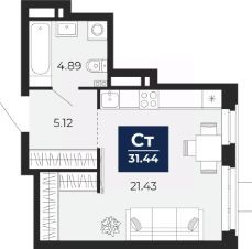 1-комн. квартира-студия от застройщика с предчистовой отделкой в ЖК "Айвазовский City" на 11 этаже. Общая площадь: 31.44 кв.м., площадь гостиной 21.43 кв.м., из которых 5 кв.м. выделено под кухонную зону. Все окна выходят на одну сторону. В квартире один совмещенный санузел. Высота потолков 2.7 м.