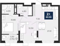 Просторная 2-комн. квартира с предчистовой отделкой в ЖК "Айвазовский City" на 14 этаже. Общая площадь: 60 кв.м., жилая: 21.1 кв.м., площадь просторной кухни-столовой: 21.1 кв.м. Комнаты изолированные, все окна выходят на одну сторону. В квартире одна лоджия, два совмещенных санузла. Высота потолков 2.72 м.