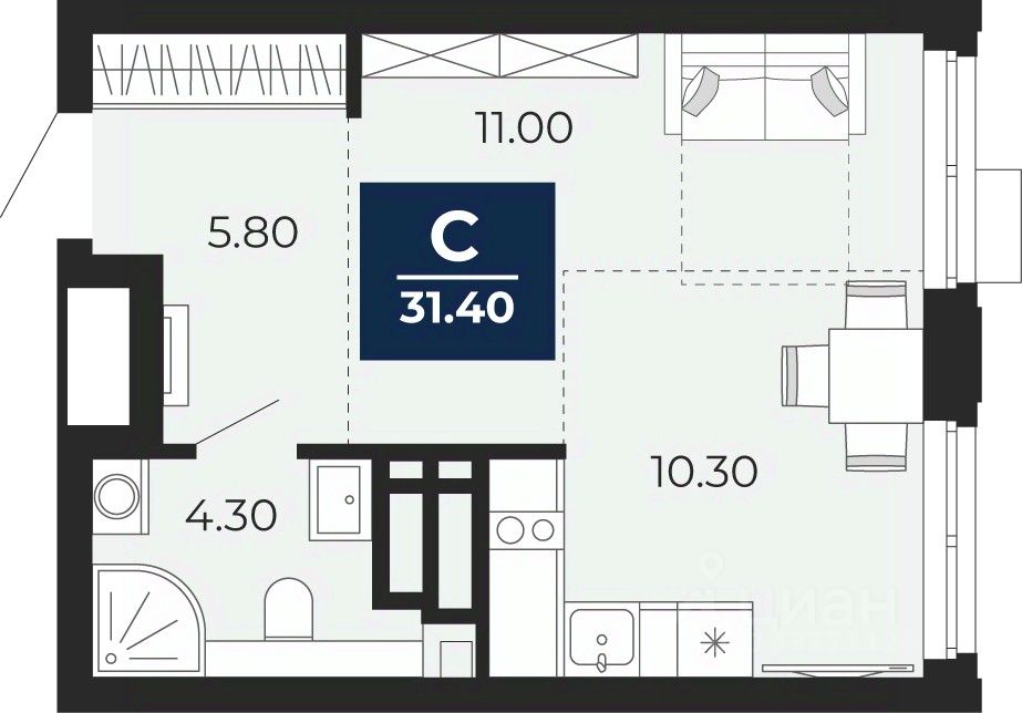 Общая площадь31,4 м²