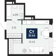 Просторная однокомнатная квартира-студия с предчистовой отделкой в ЖК "Айвазовский City" на 3 этаже. Общая площадь: 31.44 кв.м. Высота потолков 2.7 м.