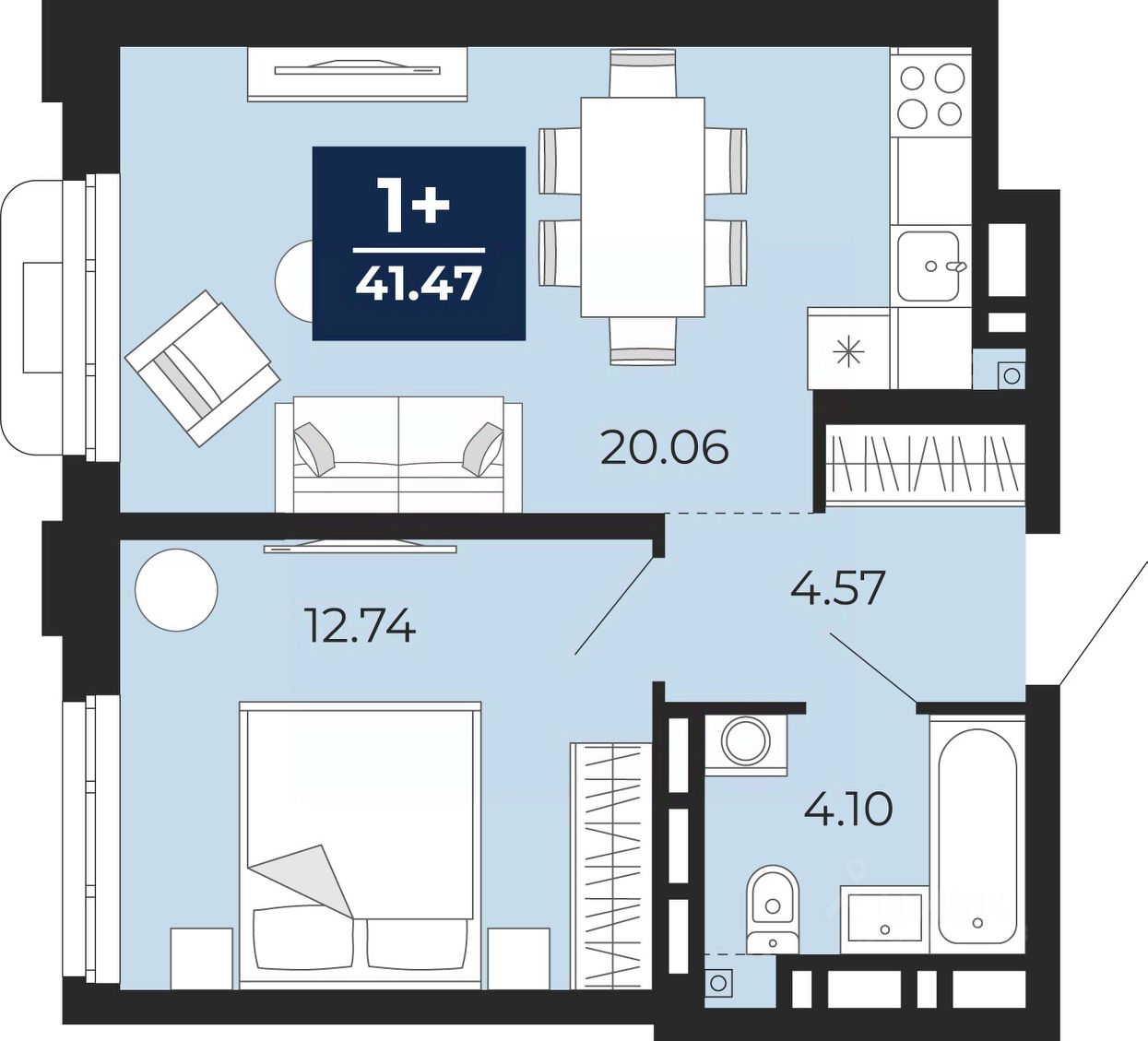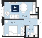 Просторная 1-комн. квартира с предчистовой отделкой в ЖК "Айвазовский City" на 2 этаже. Общая площадь: 41.47 кв.м. Высота потолков 2.7 м.