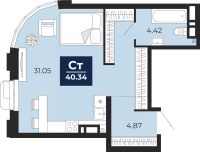 Просторная 1-комн. квартира-студия с предчистовой отделкой в ЖК "Айвазовский City" на 3 этаже. Общая площадь: 40.34 кв.м., площадь гостиной 31.05 кв.м., из которых 10 кв.м. выделено под кухонную зону. Угловая квартира, идеально подойдет любителям тишины и панорамных видов. В квартире один совмещенный санузел. Высота потолков 2.7 м.