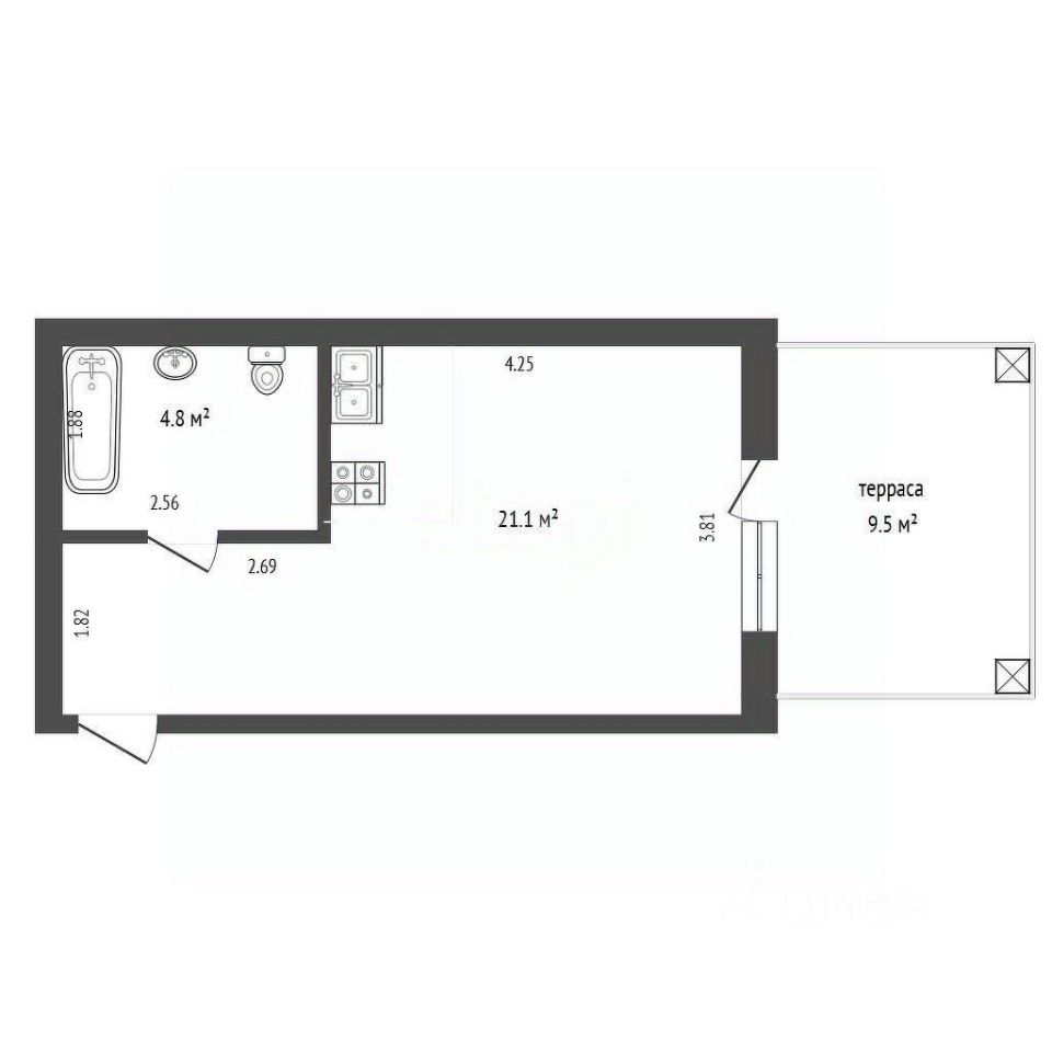 Уникальное предложение: студия с террасой в перспективном районе Патрушева!