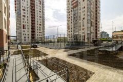 Благоустройство придомовой территории - важная составляющая всего комплекса. Внутри комплекса: места для семейного отдыха, детские и спортивные площадки, зеленые насаждения.