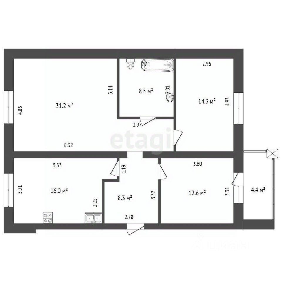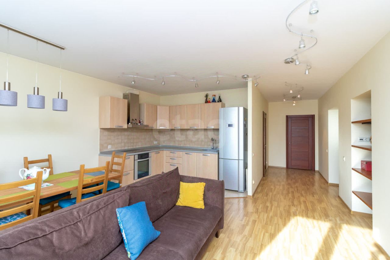 Просторная трехкомнатная квартира отличается рациональной планировкой: три изолированные комнаты, совмещенная кухня-гостиная значительной площади и большая прихожая со встроенным шкафом-купе.