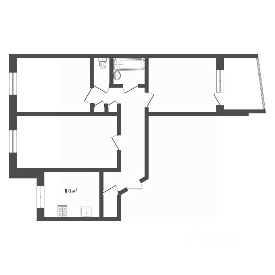 Удобная планировка "распашонка" комнаты разделены