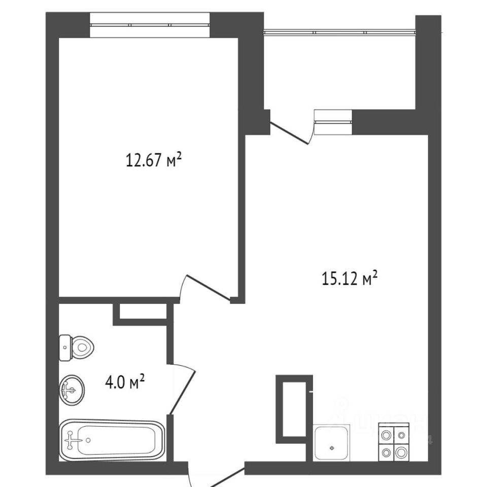 - Жилая комната — 12,67 м², санузел — 4 м², окна с пятикамерным профилем, ровные стены и потолок