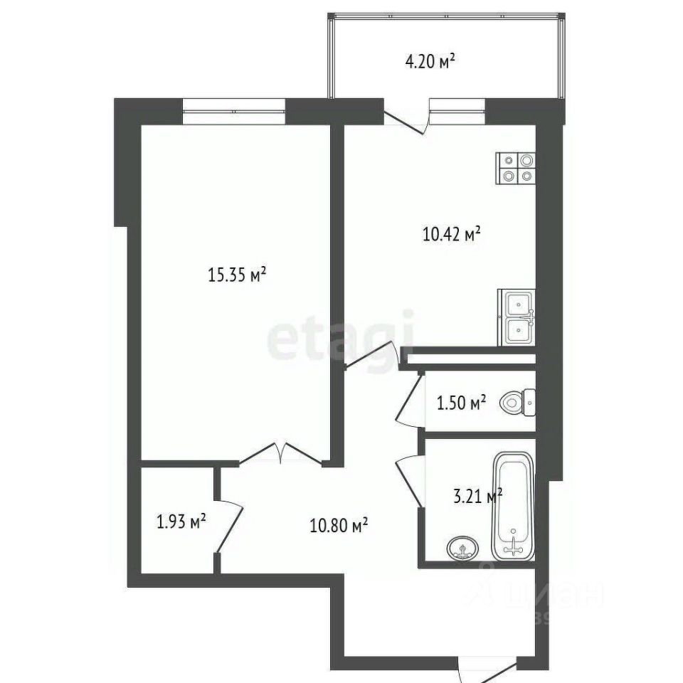 * Большой благоустроенный балкон с видом на торговый центр добавляет преимуществ — здесь можно устроить зону отдыха или мини-сад.