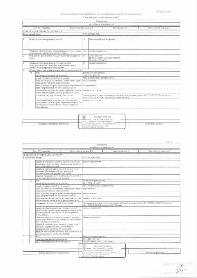 Должник: Плоскова (Новоселова, Молоткова) И.А., собственник: Плоскова (Новоселова, Молоткова) И.А. Лот: Жилое помещение (квартира), площадь 47,8 кв.м., кадастровый номер: 72:23:0430002:3404, г. Тюмень, ул. Пермякова, д. 52, кв. 25, (зарегистрированные лица - 1 взрослый, 2 несовершеннолетних, долг за кап.ремонт на 10.06.25 - 12т.р.), н/ц: 4434535 р., з-к: 665181 р, код: 0001, рег. 72-009943;