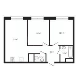 • Просторная 2-комнатная квартира 58,5 м² с предчистовой отделкой: