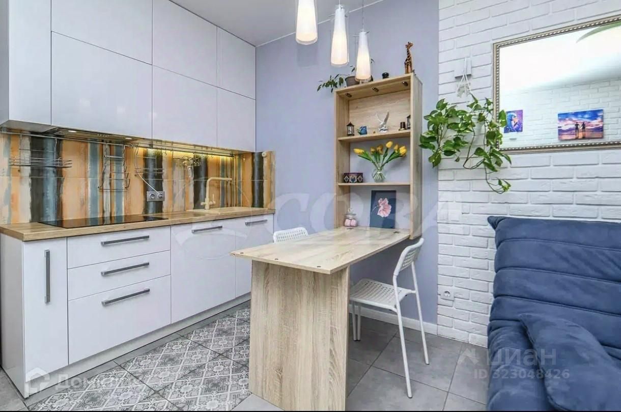 Продается очень атмосферная, уютная квартира на 16 этаже в теплом кирпичном доме общей площадью 27кв.м, с потрясающими видами и волшебными рассветами. Уютная студия с хорошим современным ремонтом по индивидуальному дизайн-проекту (делали для себя с любовью), с утепленной лоджией и встроенной мебелью и техникой. Над квартирой располагается технический этаж. Соседей не слышно. В квартире всё продумано до мелочей, для комфортного проживания. Есть кондиционер. Интерьер в светлых тонах визуально расширяет пространство, много мест хранения, в прихожей вместительный шкаф -купе до потолка, на лоджии есть также шкаф до потолка глубиной 70 см. Кухонный гарнитур со встроенной вытяжкой расположен нестандартно, за счёт чего пользоваться очень удобно. Обеденный стол отдельная фишка для студии, он в виде шкафа на стене, при необходимости складывается. Различные виды освещения, включаются отдельно, в том числе умный потолочный светильник с пультуправлением или управление со смартфона. Цветовая температура меняется от теплой желтой до холодной голубой также есть дополнительная разноцветная подсветка , можно менять для создания особой атмосферы. На каждом квадратном метре розетки. На полу везде, включая лоджию, керамогранит приятной расцветки. На стенах облицовочный гипсовый кирпич и обои под покраску. В санузле и на балконе установлен теплый пол. В санузле также керамогранит, есть вместительный шкаф который скрывает от глаз ревизионные лючки, но при этом в них есть доступ. Установлен электрический полотенцесушитель и тропический душ. Огромное зеркало с подсветкой.