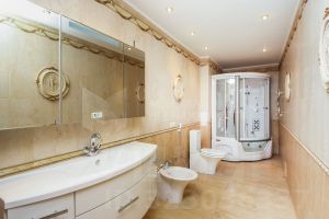Продается квартира в двух уровнях (9 и 10 этажи) в одноподьездном доме в центре города. В районе очень хорошо развита инфраструктура: детские сады, школы, почтовое отделение, поликлиника, два крытых ледовых катка, спортивные клубы, большой офис Сбербанка, а также три сквера. Эксклюзивный дизайн квартиры впечатлит Вас! Основной коридор на 1-м уровне имеет элементы фрески и лепнины, у входа располагается гардеробная с зеркальными дверями. Напротив - большая солнечная кухня. Кухонный гарнитур изготовлен из композитных материалов в стиле модерн. Имеется вся необходимая бытовая техника (новая, не использовалась): измельчитесь пищевых отходов в раковине, посудомоечная машина, вытяжка, варочная панель, шкаф для подогрева посуды, кофемашина. Вся бытовая техника германского производства (Miele, Bosch). В целом кухню отличает функциональность и комфортность использования. Комната кабинет на первом уровне выполнена в строгом стиле. Ванная комната первого уровня выполнена в греческом стиле и оборудована сантехникой (включая душевую кабину) и выводами для стиральной и сушильной машин. Просторная гостиная с белым кожаным диваном, очень светлая так как имеет выход на обе стороны улицы. Здесь же находится лестница, изготовленная из натурального дерева, которая ведёт на второй уровень, где находится уютная спальня. Мебель в комнате декорирована вставками из белой кожи и шелковой вышивкой. Напротив - комната с детской мебелью - светлая и очень тёплая комната! Ванная второго уровня оборудована чудесной ванной, которая имеет множество функций! В следующей комнате находится вместительный шкаф-купе с зеркальными дверьми, установлен детский игровой комплекс. В отдельном помещении расположен бойлер (300 литров), с разводкой на все краны в квартире. Потолки в квартире натяжные, пол - ламинат, стены и потолки декорированы лепниной, обои и шторы производства Италии. Во всех помещения установлены самые современные кондиционеры. Квартира имеет 7 лоджий. Дополнительно оплачивается комиссия с покупателя. Номер объекта: 1225212