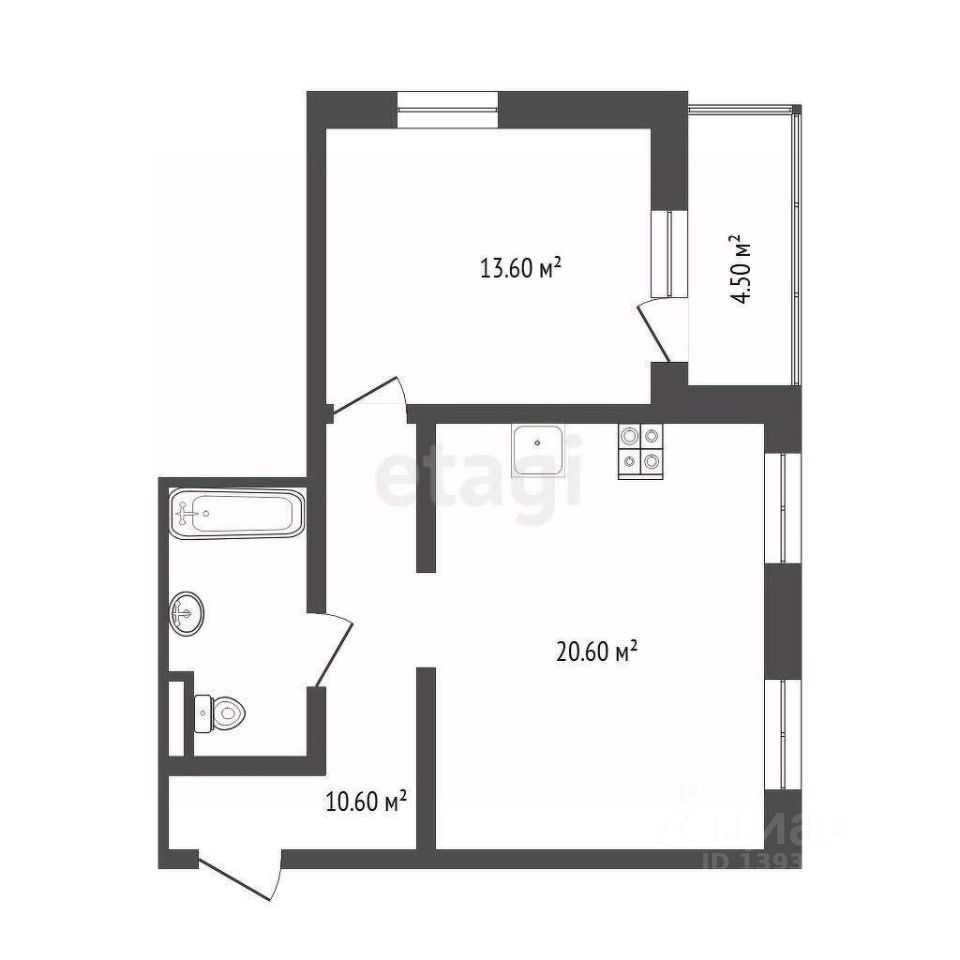 Просторная светлая однокомнатная квартира 49,1 кв.м.