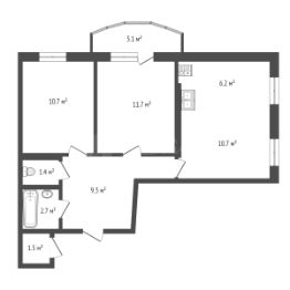 Планировка функциональная: две спальни по 11 кв., и кухня гостинная 18 кв м.