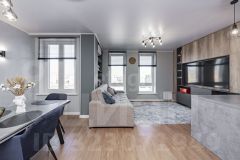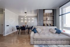 О КВАРТИРЕ: Квартира имеет две отдельных спальни + просторную кухню-гостинную. Выполнен качественный современный ремонт по дизайн-проекту. Имеется 2 санузла, отдельная постирочная , большая гардеробная, кладовка 3 кв.м., закрытый балкон с теплым полом,а также установлен водонагреватель. В туалетах и прихожей есть теплый пол. При продаже остается вся встроенная техника!