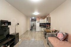 Уважаемые покупатели! Предлагаем Вашему вниманию отличную квартиру-студию в ЖК "Олимпия"! Если для Вас понятия простор, гармония, уют, комфорт имеют такое же важное значение, как и для нас, эта квартира непременно придется Вам по-душе! Квартира продается в отличном состоянии - основательный ремонт, который делали по принципу "для себя любимых - надолго и всерьез" - использовали только качественные дорогостоящие материалы: хорошие двери, ламинат 33 класса прочности, достойная плитка в сан.узле, сантехника и сан.фаянс, имеется большая гардеробная. Кухонный гарнитур от мебельной фабрики "Мария" с гарантией качества 20 лет из европейских материалов и с европейскими комплектующими. Элегантная простота форм и высокая эргономичность мебели Вас однозначно удивит. В интерьере преобладают светлые и свежие тона, расширяющие пространство. Приходите и убедитесь сами - она замечательная!