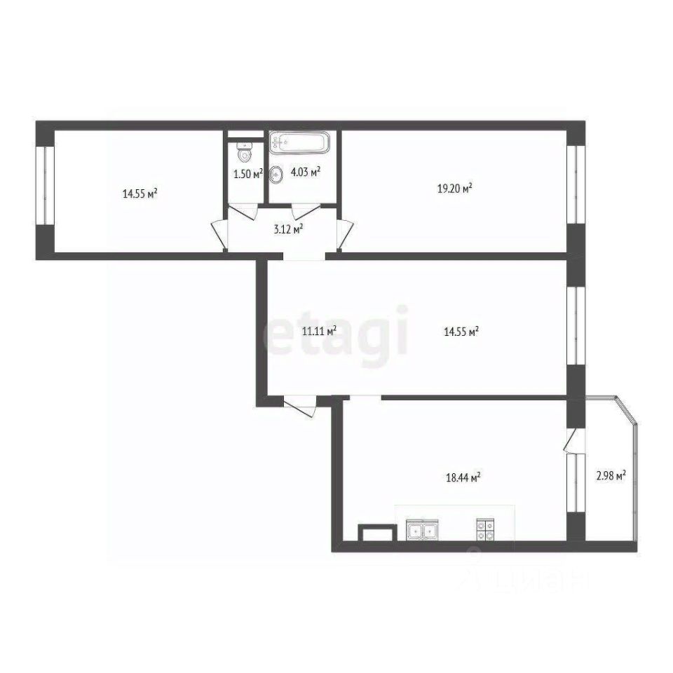 ОБЪЕКТ: 3х-комнатная квартира площадью 86,4 кв.м. на 4 этаже 15-этажного дома