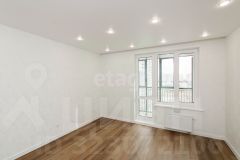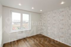 В квартире сделан свежий современный ремонт. На полу в комнатах кварц винил, на стенах качественные обои светлых тонов. Потолки натяжные. Сан узел совмещен, на полу керамогранит, на стенах керамическая плитка. По всей квартире хорошее освещение из точечных светильников. Межкомнатные двери подобраны под цвет стен.