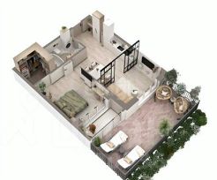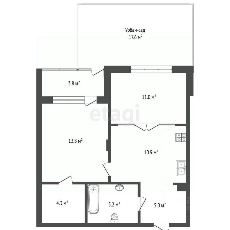 общей площадью 51,99 кв.м.+ 17м2 урбан-сад с выходом из балкона.