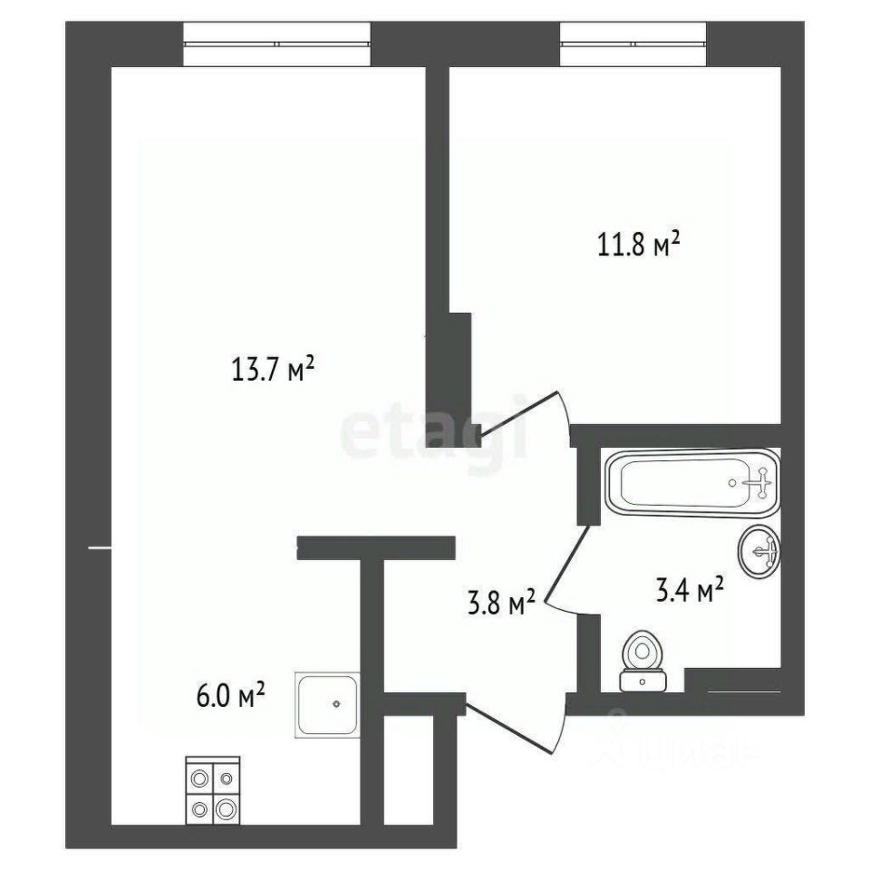 Квартира расположена на среднем этаже, планировка 1+ — оптимальный вариант для комфортной жизни одного человека, пары или молодой семьи.