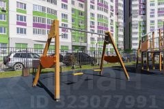 Територия дома закрытая, есть видеонаблюдение, в подъезде имеется колясочная. Во дворе детская и спортивная площадки. Парковка находится за пределами двора.