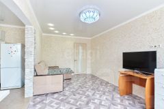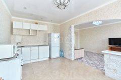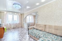 Квартира выполнена в современном стиле с качественным ремонтом: стены оклеены стильными обоями, на полу уложен прочный ламинат 33-го класса В качестве приятного бонуса новым владельцам достанется шикарный кухонный гарнитур и вместительный шкаф-купе — идеальное решение для хранения вещей!