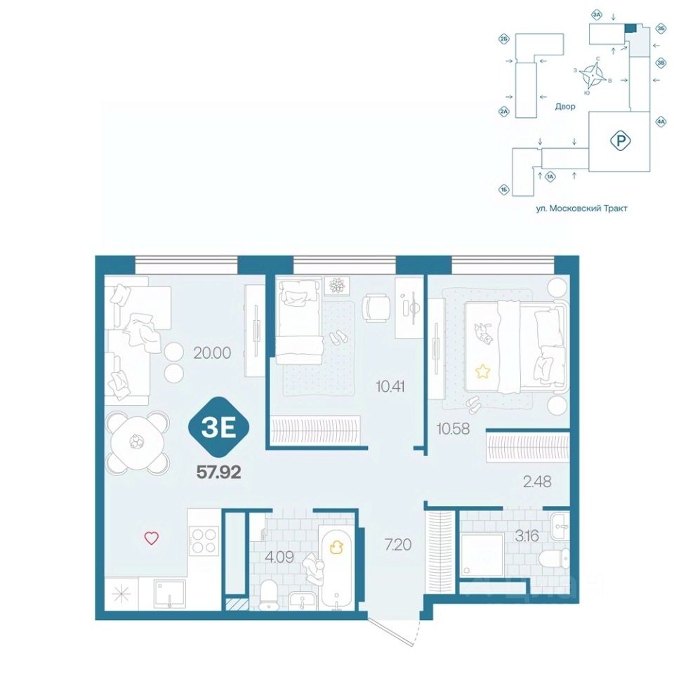 57,92 м²