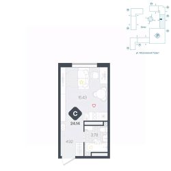 Уютная студия с большой ванной комнатой и прихожей, в которой поместится вместительный шкаф. Подойдет для студентов и свободных молодых людей.