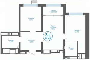 Просторная 2-комн. квартира в ЖК "Айвазовский City" на 4 этаже. Квартира без отделки, полностью готова к ремонту. Общая площадь: 63.58 кв.м., жилая: 26.79 кв.м., площадь просторной кухни-столовой: 16.67 кв.м. Угловая квартира, очень светлая, естественная вентиляция при открытии окон. В квартире одна лоджия, два совмещенных санузла. Высота потолков 2.72 м.