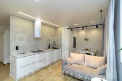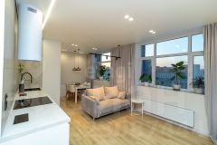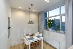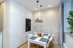 Кухня-гостиная 21,5 кв.м., правильной формы для удобства расположения и размещения мебели. А еще на кухне 2 окна! Что делает ее наполненной естественным светом.