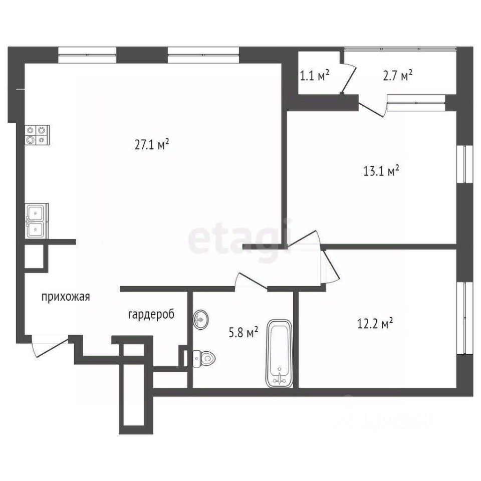 Просторная кухня-гостиная площадью 27 кв.м позволяет комфортно готовить и принимать гостей.