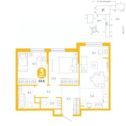 площадь квартиры - 53,6 кв.мГармоничные пропорции и большие окна наполняют пространство светом, создавая уютную атмосферу. Умное зонирование позволяет удобно организовать как рабочую, так и жилую зоны, что особенно важно для современных жителей. Санузел спроектирован с учетом всех потребностей: здесь есть ванна и место для стиральной машины. Каждый метр квартиры используется с максимальной эффективностью, что делает эту планировку отличным выбором для тех, кто ценит комфорт и удобство.
