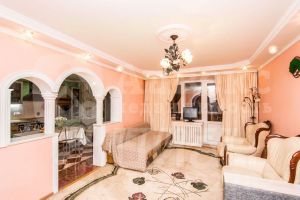 В квартире сейчас стандартный ремонт : пластиковые окна,потолки в двух комнатах и коридоре натяжные,зал и кухня -выровненные, на полу в комнатах паркетная доска, на кухне и коридоре - кафель, на стенах в двух комнатах обои, в коридоре, кухне и зале - колер. Балкон 6 метров, застеклен и обшит деревом. Квартира с большой колясочной и отдельным балконом, который можно использовать как гараж. При продаже остается кухонный гарнитур с варочной панелью, духовым шкафом,вытяжкой, двухкамерный холодильник. Это вариант для семей с детьми или просто для тех, кто ценит пространство и уют.