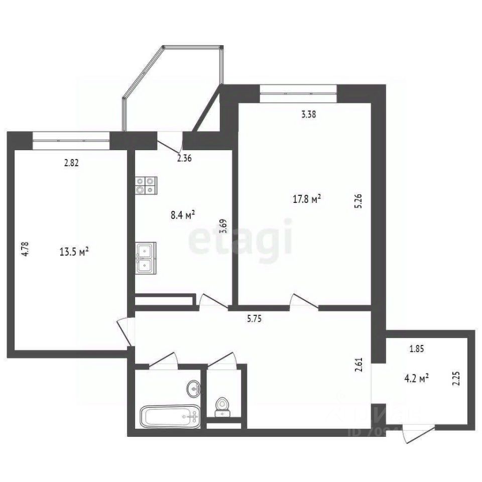 Общая площадь54,2 м²
