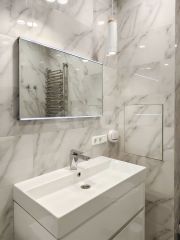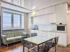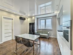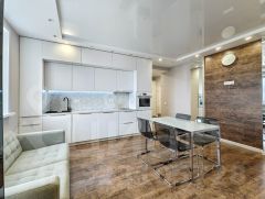Техника: В квартире остаётся кондиционер, встроенная кухня с техникой и крупногабаритный холодильник. Установлены проточные фильтры для воды и нагреватель.