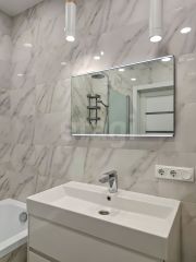 Ремонт: Выполнен по дизайн-проекту! Качественный ламинат, натяжные потолки, новая электропроводка. Санузел совмещенный, отделан керамогранитом.