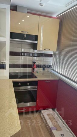 Балкон превращён в удобную кухонную зону, сохранив всё необходимое оборудование.
