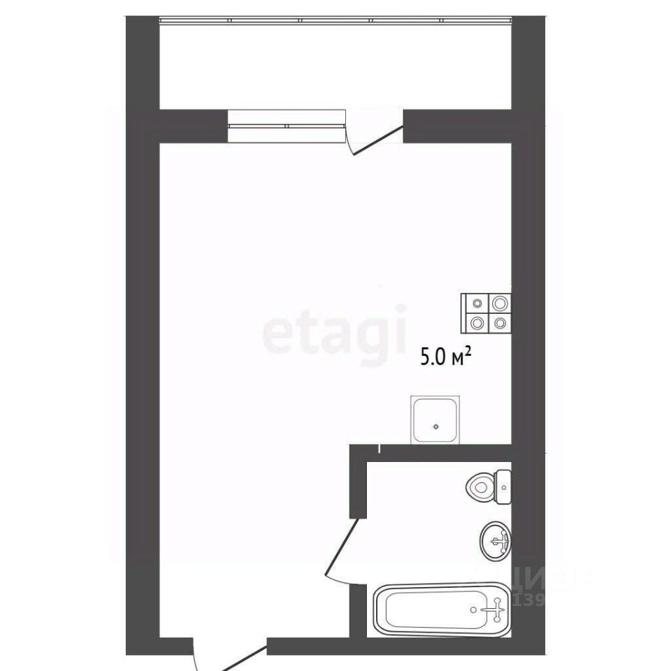 Площадь: просторная и светлая квартира-студия общей площадью 23.1 м² с правильной геометрической формой комнаты + лоджия 5 кв.м.