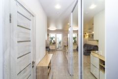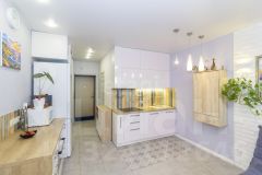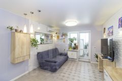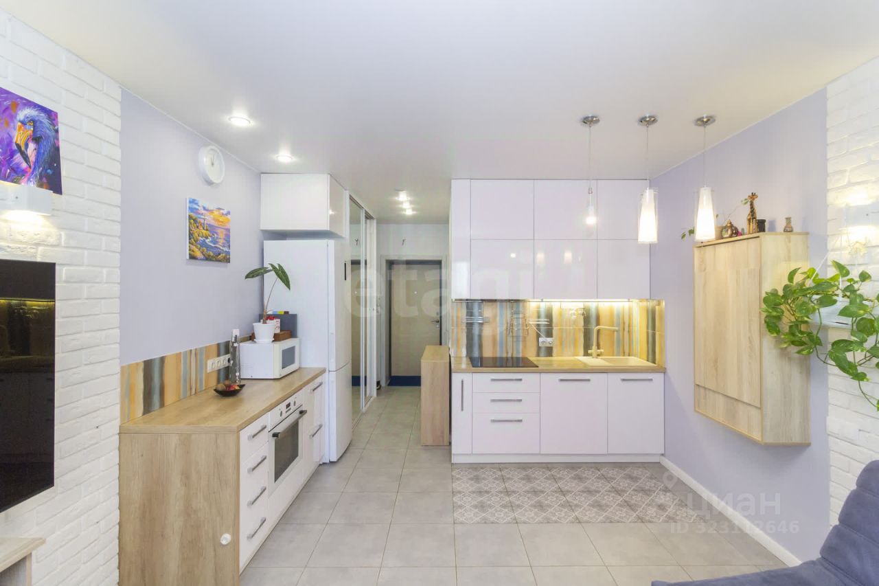 Продается квартира на 16 этаже в теплом кирпичном доме с потрясающими видами и волшебными рассветами. Уютная студия с хорошим современным ремонтом по индивидуальному дизайн-проекту (делали для себя с любовью), с утепленным балконом и втроенной мебелью и техникой. В квартире всё продумано до мелочей, для комфортного проживания. Есть кондиционер. Интерьер в светлых тонах визуально расширяет пространство, много мест хранения, в прихожей вместительный шкаф -купе до потолка, дополнительно обувница, на лоджии есть также шкаф до потолка глубиной 70 см. Кухонный гарнитур со встроенной вытяжкой расположен нестандартно, за счёт чего пользоваться очень удобно и нет ощущения что живёшь на кухне. Обеденный стол отдельная фишка для студии, он в виде шкафа на стене, при необходимости складывается. Различные виды освещения, включаются отдельно, в том числе умный потолочный светильник с пультуправлением или управление со смартфона. Цветовая температура меняется от теплой желтой до холодной голубой также есть дополнительная разноцветная подсветка , можно менять для создания особой атмосферы. На каждом квадратном сантиметре розетки. На полу керамогранит приятной расцветки. В санузле и на балконе установлен теплый пол. В санузле также керамогранит, есть вместительный шкаф который скрывает от глаз ревизионные лючки, но при этом в них есть доступ. Установлен электрический полотенцесушитель и тропический душ. Огромное зеркало с подсветкой.