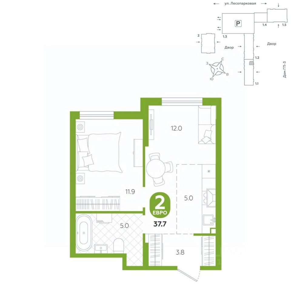 площадь квартиры - 37,7 кв.мГармоничные пропорции и большие окна наполняют пространство светом, создавая уютную атмосферу. Умное зонирование позволяет удобно организовать как рабочую, так и жилую зоны, что особенно важно для современных жителей. Санузел спроектирован с учетом всех потребностей: здесь есть ванна и место для стиральной машины. Каждый метр квартиры используется с максимальной эффективностью, что делает эту планировку отличным выбором для тех, кто ценит комфорт и удобство.