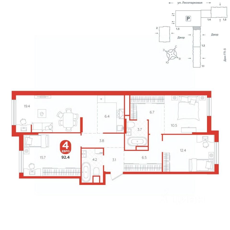 Квартира располагается в ГК "Чистые Пруды" от "Паритет девелопмент". Это флагманский проект компании в Тюмени.