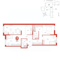 площадь квартиры - 92,4 кв.мГармоничные пропорции и большие окна наполняют пространство светом, создавая уютную атмосферу. Умное зонирование позволяет удобно организовать как рабочую, так и жилую зоны, что особенно важно для современных жителей. Санузел спроектирован с учетом всех потребностей: здесь есть ванна и место для стиральной машины. Каждый метр квартиры используется с максимальной эффективностью, что делает эту планировку отличным выбором для тех, кто ценит комфорт и удобство.