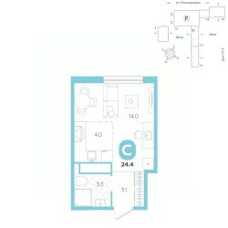 площадь квартиры - 24,4 кв.мГармоничные пропорции и большие окна наполняют пространство светом, создавая уютную атмосферу. Умное зонирование позволяет удобно организовать как рабочую, так и жилую зоны, что особенно важно для современных жителей. Санузел спроектирован с учетом всех потребностей: здесь есть ванна и место для стиральной машины. Каждый метр квартиры используется с максимальной эффективностью, что делает эту планировку отличным выбором для тех, кто ценит комфорт и удобство.