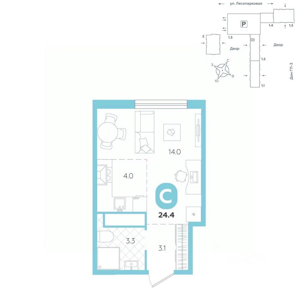 Квартира располагается в ГК "Чистые Пруды" от "Паритет девелопмент". Это флагманский проект компании в Тюмени.