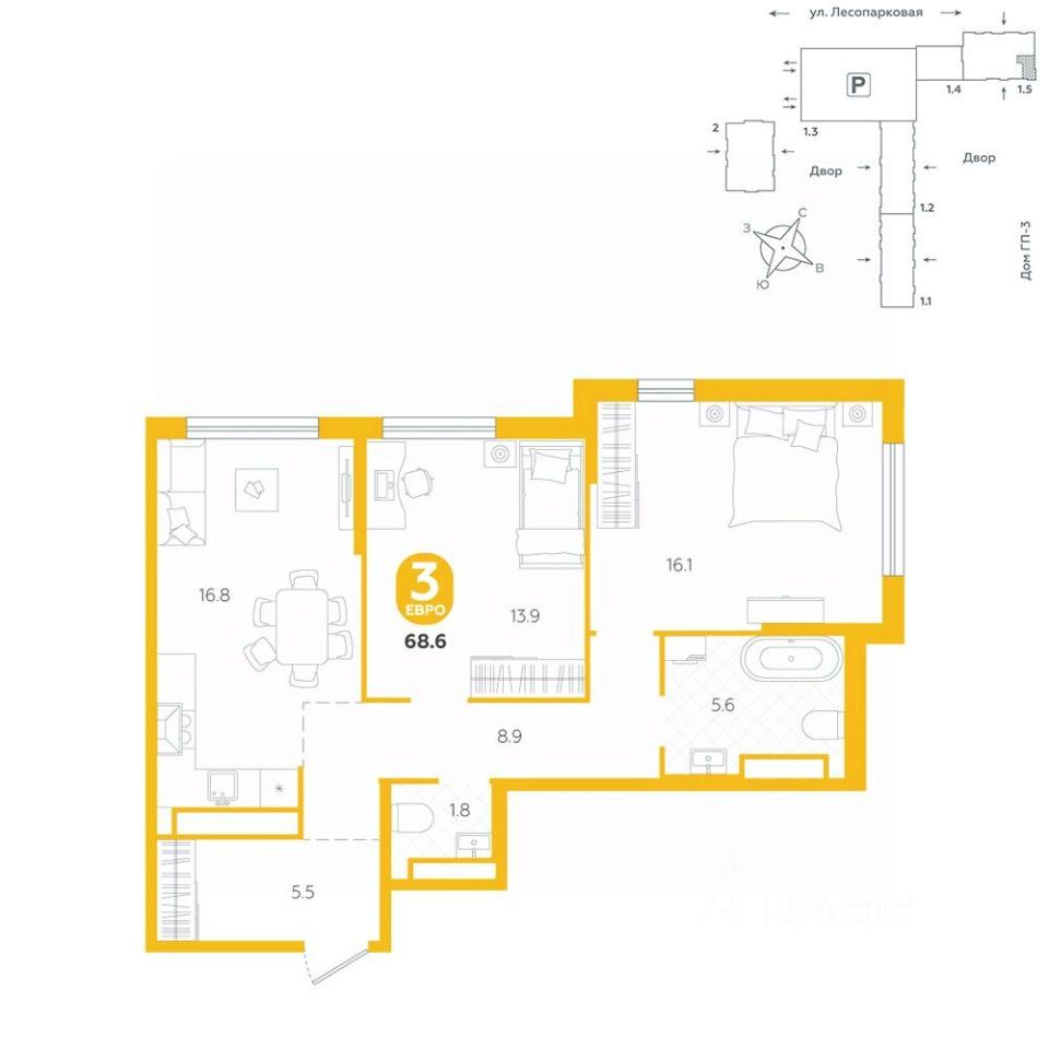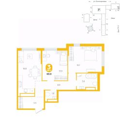 площадь квартиры - 68,6 кв.мГармоничные пропорции и большие окна наполняют пространство светом, создавая уютную атмосферу. Умное зонирование позволяет удобно организовать как рабочую, так и жилую зоны, что особенно важно для современных жителей. Санузел спроектирован с учетом всех потребностей: здесь есть ванна и место для стиральной машины. Каждый метр квартиры используется с максимальной эффективностью, что делает эту планировку отличным выбором для тех, кто ценит комфорт и удобство.