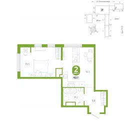 площадь квартиры - 42,1 кв.мГармоничные пропорции и большие окна наполняют пространство светом, создавая уютную атмосферу. Умное зонирование позволяет удобно организовать как рабочую, так и жилую зоны, что особенно важно для современных жителей. Санузел спроектирован с учетом всех потребностей: здесь есть ванна и место для стиральной машины. Каждый метр квартиры используется с максимальной эффективностью, что делает эту планировку отличным выбором для тех, кто ценит комфорт и удобство.
