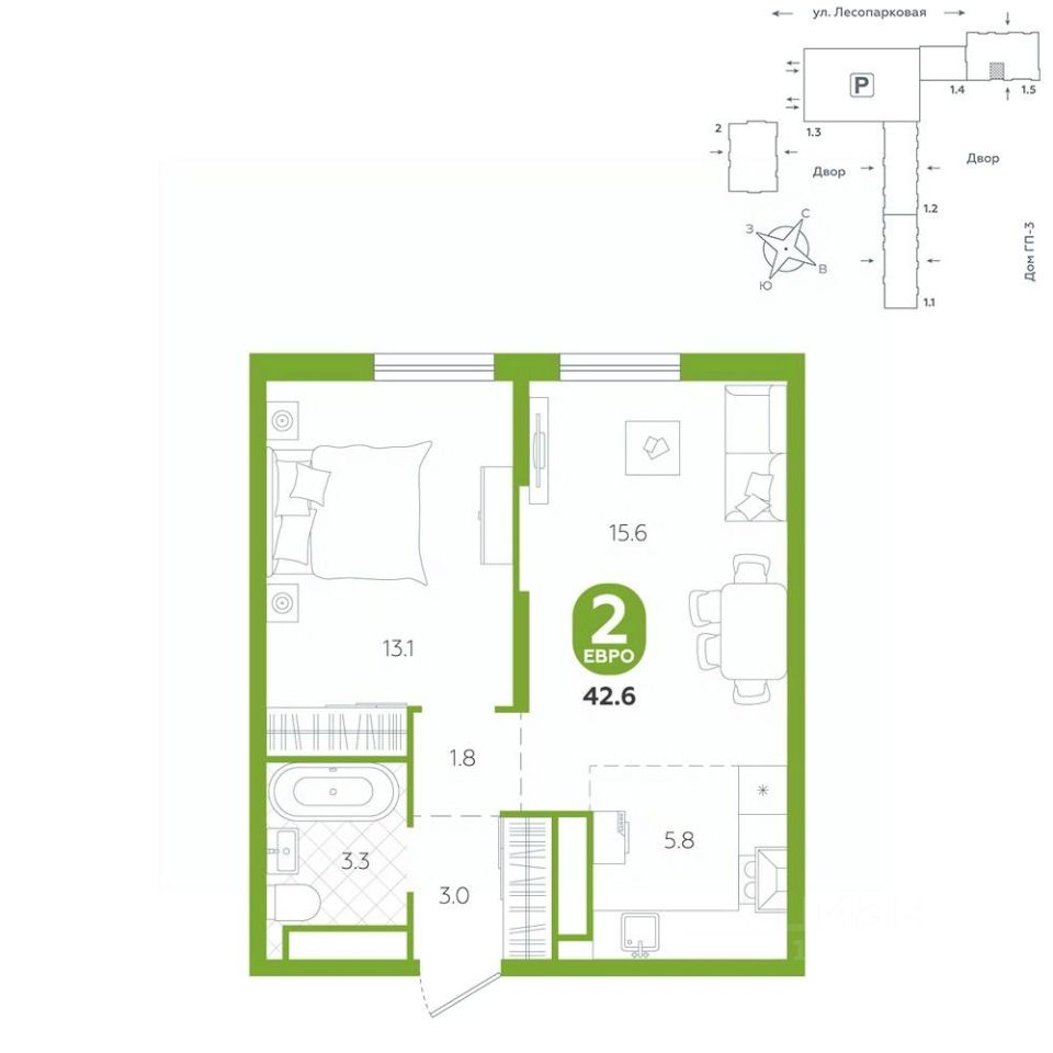 площадь квартиры - 42,6 кв.мГармоничные пропорции и большие окна наполняют пространство светом, создавая уютную атмосферу. Умное зонирование позволяет удобно организовать как рабочую, так и жилую зоны, что особенно важно для современных жителей. Санузел спроектирован с учетом всех потребностей: здесь есть ванна и место для стиральной машины. Каждый метр квартиры используется с максимальной эффективностью, что делает эту планировку отличным выбором для тех, кто ценит комфорт и удобство.