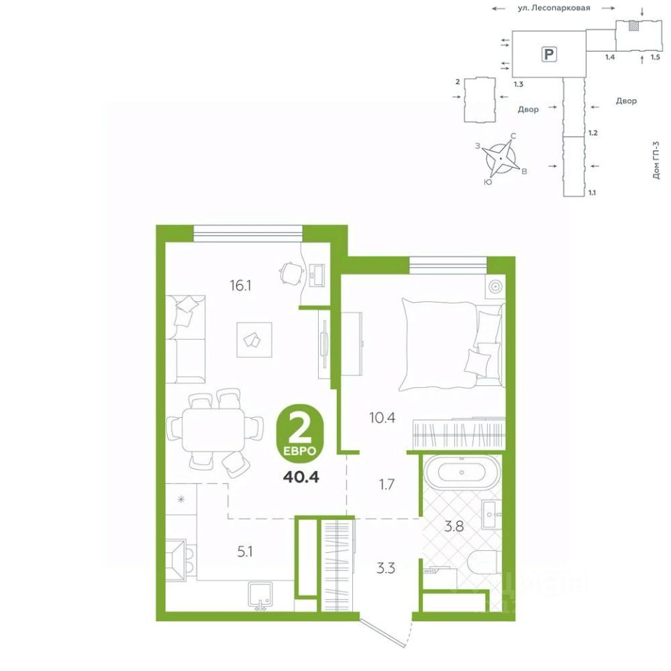 Квартира располагается в ГК "Чистые Пруды" от "Паритет девелопмент". Это флагманский проект компании в Тюмени.