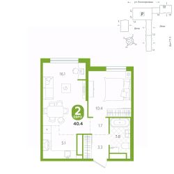 площадь квартиры - 40,4 кв.мГармоничные пропорции и большие окна наполняют пространство светом, создавая уютную атмосферу. Умное зонирование позволяет удобно организовать как рабочую, так и жилую зоны, что особенно важно для современных жителей. Санузел спроектирован с учетом всех потребностей: здесь есть ванна и место для стиральной машины. Каждый метр квартиры используется с максимальной эффективностью, что делает эту планировку отличным выбором для тех, кто ценит комфорт и удобство.