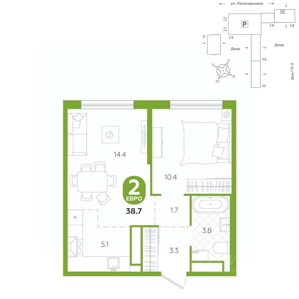 площадь квартиры - 38,7 кв.мГармоничные пропорции и большие окна наполняют пространство светом, создавая уютную атмосферу. Умное зонирование позволяет удобно организовать как рабочую, так и жилую зоны, что особенно важно для современных жителей. Санузел спроектирован с учетом всех потребностей: здесь есть ванна и место для стиральной машины. Каждый метр квартиры используется с максимальной эффективностью, что делает эту планировку отличным выбором для тех, кто ценит комфорт и удобство.